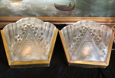 Very traditional Art Deco. PAIR OF ART DECO FROSTED GLASS WALL SCONCES. Overall Very practiced condition. See photos. Not tested.